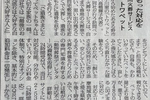 2023年4月23日発行の地元紙西多摩新聞さんに掲載して頂きました。 西多摩新聞さんありがとうございました(^▽^) 新聞に掲載されたスクープ写真📷((笑) 2022年7月に亡くなったポメラニアンのヒナと…