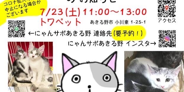 On the 23rd of July 2022, Nyan Support and Towa are holding a cat adoption event.
