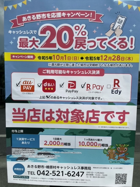 こんにちは!トワペットの高橋です。 あきる野市を応援キャンペーン! キャッシュレスで最大20%戻ってくる! に参加させていただきます。 期間は令和5年10月1日~令和5年12月28日までです。 あきる野市以外の方でも大丈…