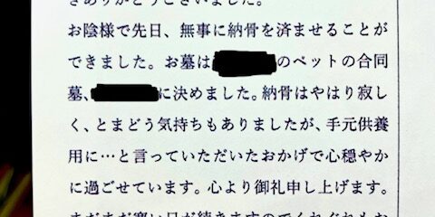 先日ご依頼頂いただきましたお客様からお手紙を頂きました。